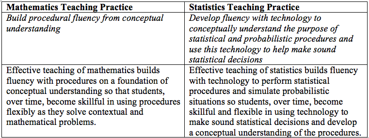 The key difference between these two practices is the shift from promoting mathematical reasoning to statistical reasoning. These two types of reasoning require different types of thinking, and, as such, are fostered in different ways.