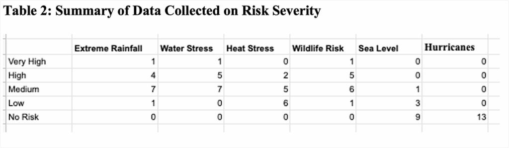 Using their answers to the bullet points above, students can begin to combine their observations into more complete and coherent thoughts. For example, one group tried to connect the different risks. By hovering over a county on the map, students can see the county is given a rating of either very high, high, medium, low, or no risk for each of the risks. These ratings are what determine the darkness of the color.
