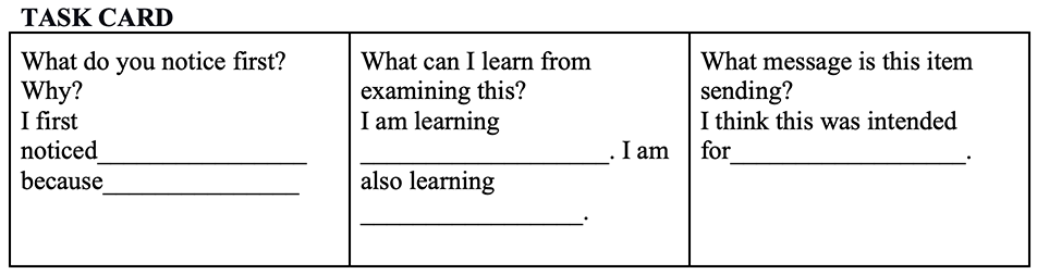 To support students in a cross-curricular investigation, Gralnik set up a series of five “inquiry centers” over a one-week period. Each center included a task card with directions, guided questions, and sentence stems for students to use. As a team, students interpreted, discussed, notated, analyzed, and asked questions.
