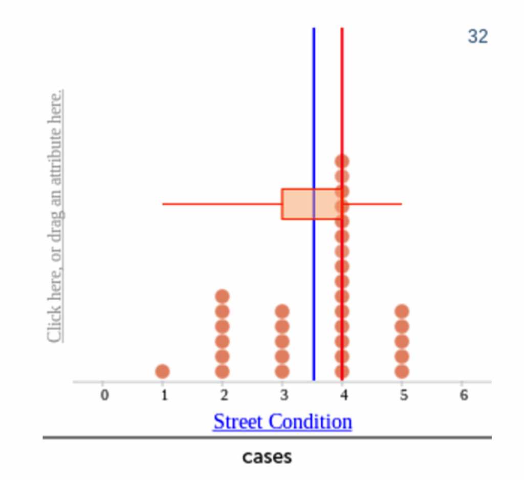 “I think most streets had more ratings of good condition than bad condition. 15 streets were rated a 4, 5 streets were rated a 5, 1 street was rated a 1, and 6 streets were rated a 2. There were a lot of streets with good ratings but there was also a little streets with lower ratings.”